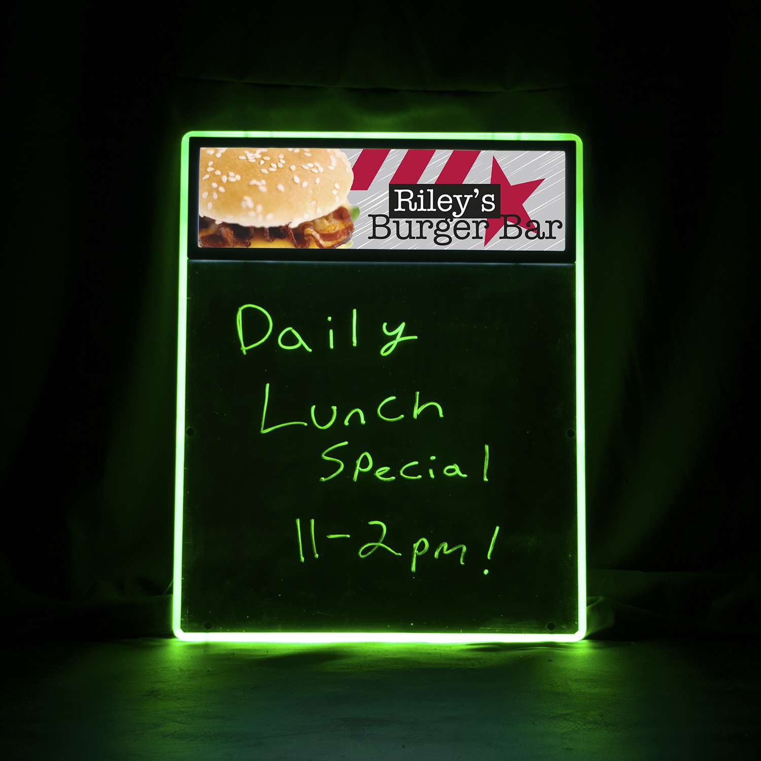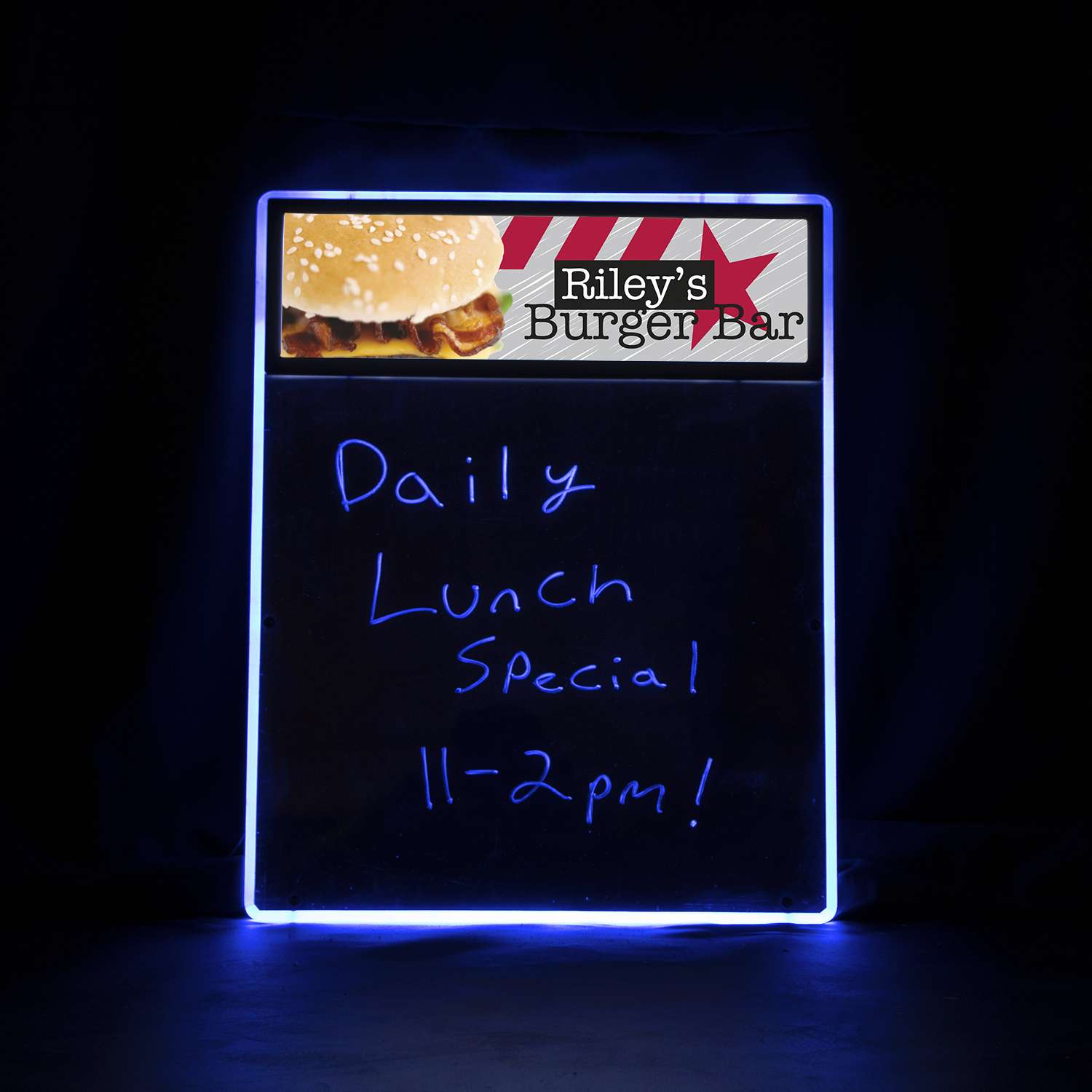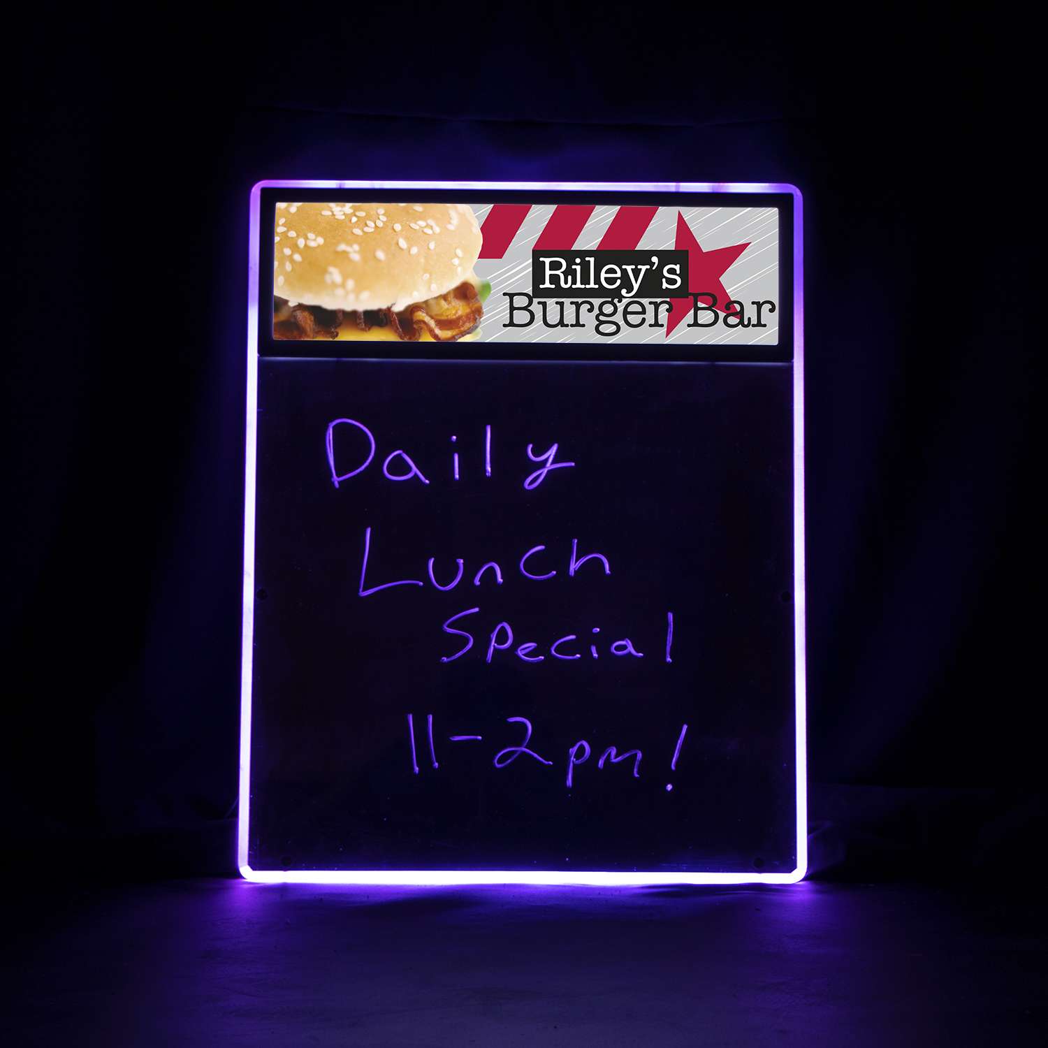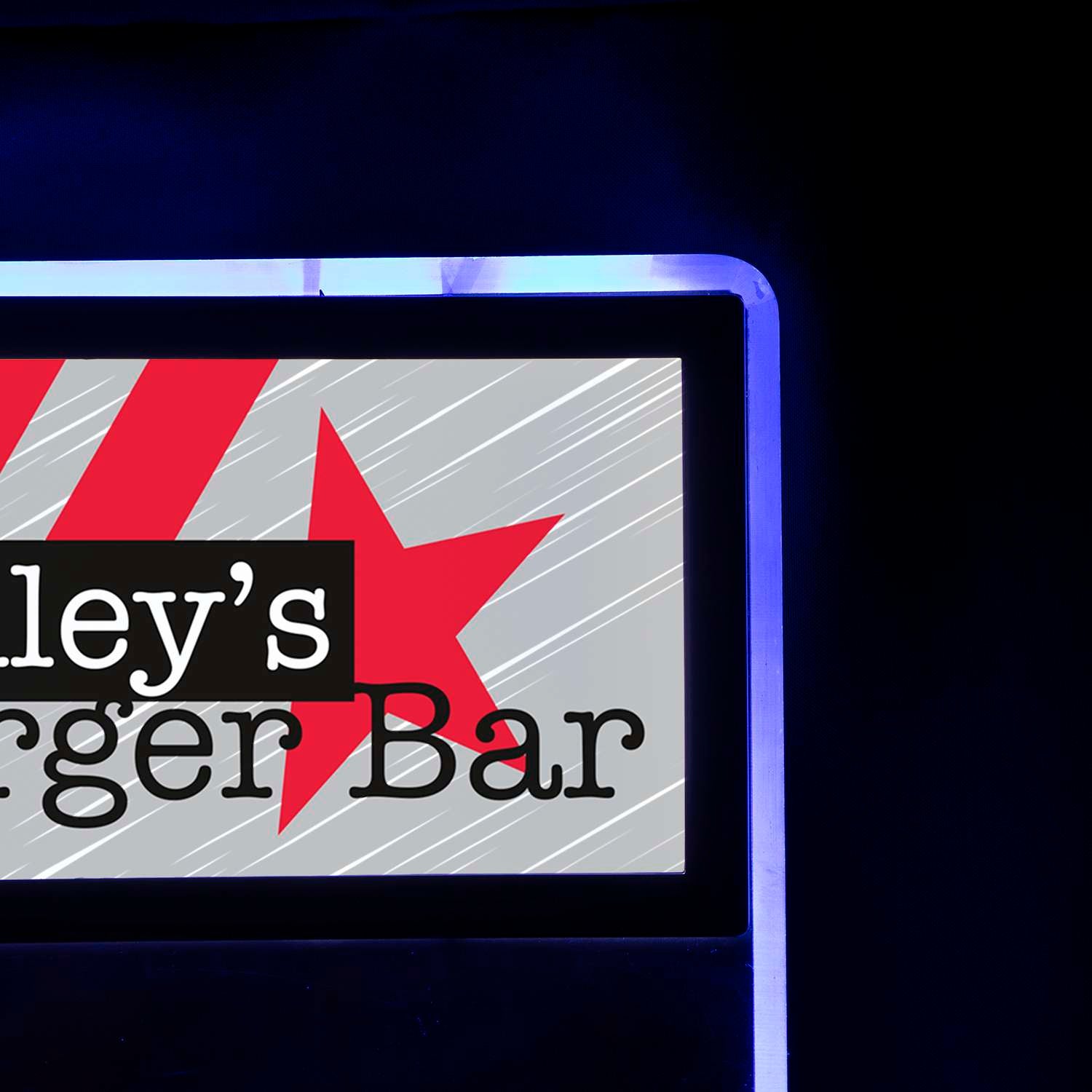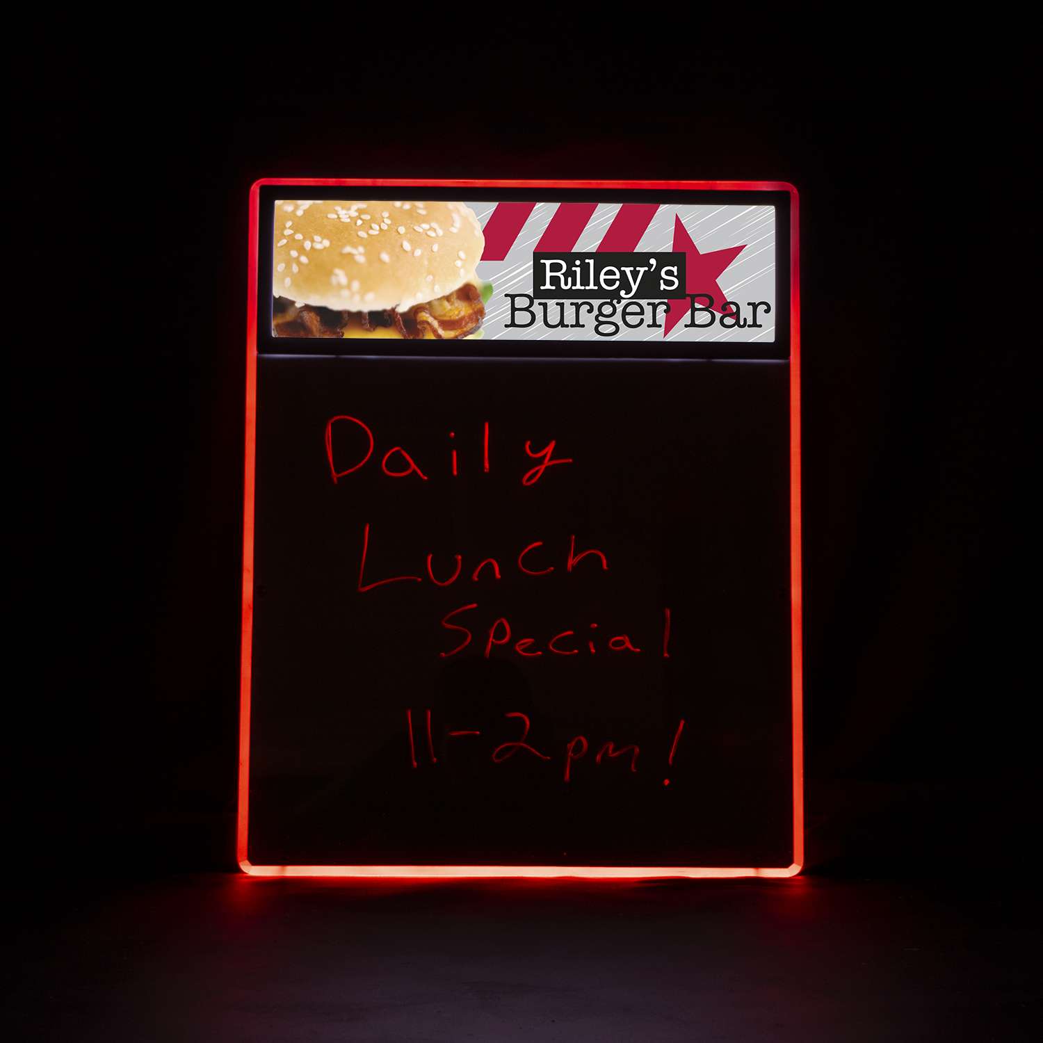 - Display rotates through RGB spectrum LED light that creates a halo effect around the beveled edge